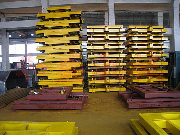 4:臺車用國標槽鋼四周雙層加固。臺車輪加大用Φ250mm(軸承6411或6312);料車輪用鋼制Φ215mm(軸承7210)。